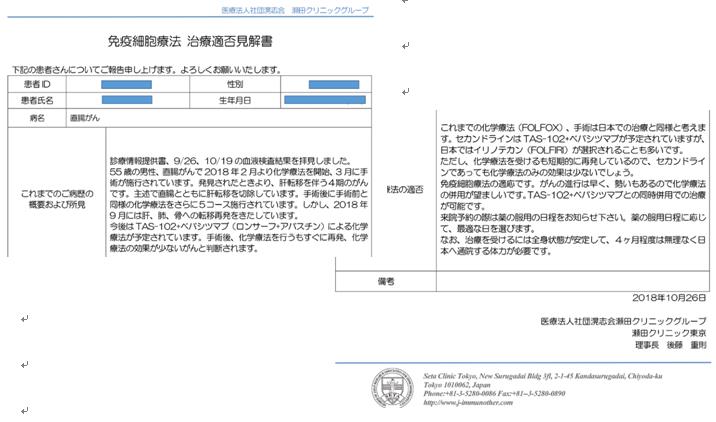“在中國治療的手術和一下化療與日本沒有什么不同,但是二線方案不同。該病人的腫瘤進展迅速,希望繼續現在的化療,結合化療,日本可以制定生物治療的方案“,以及治療的時間等等。同時還回復了我提出的一些問題。