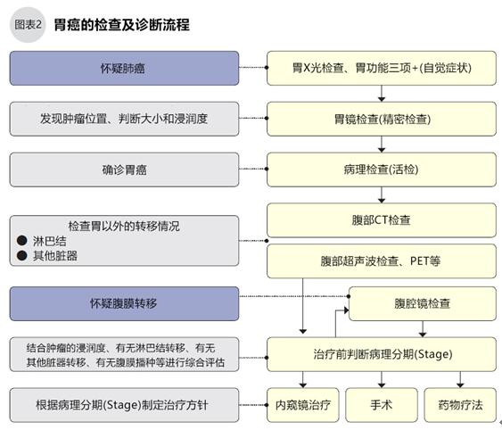 胃癌的分期判斷要先用胃鏡評估腫瘤的浸潤深度、有無淋巴結和其他臟器轉移等狀況,再用胃鏡采集樣本活檢,病理診斷后確診。胃癌治療方針的選擇需根據病理分期來決定。