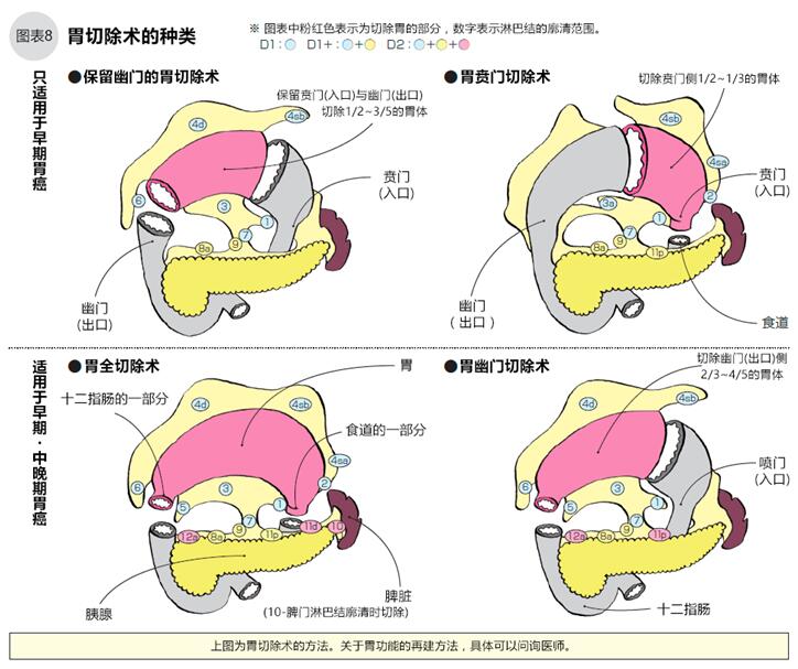 胃全切術和胃幽門切除術+D2廓清術是懷疑淋巴結轉移的早期胃癌和中晚期胃癌(ⅠB期、Ⅱ期、Ⅲ期)時的標準手術。