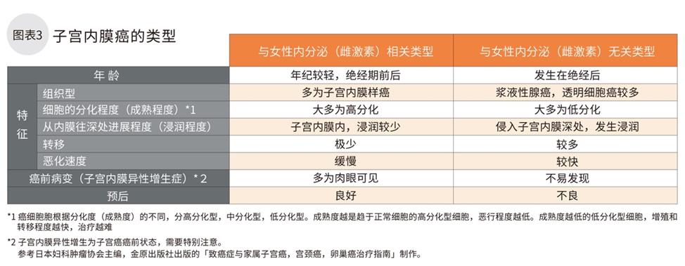 子宮癌有很多種類(圖2)。約80%以上為發生于腺細胞(分泌潤滑子宮內膜的粘液)的子宮內膜腺癌。根據是否與雌激素的分泌相關,可分多種種類(圖3)。