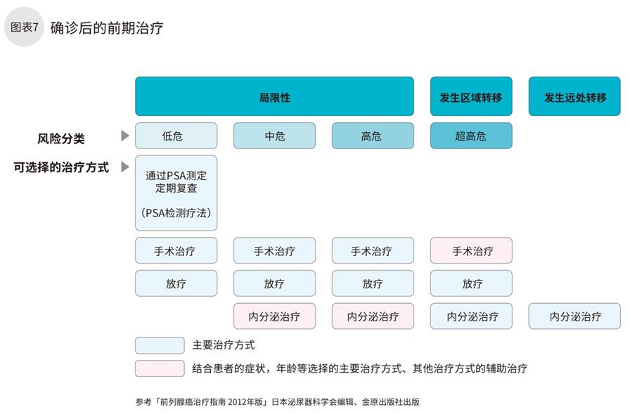 大多數癌癥的治療都是遵循手術治療,放射線治療,藥物治療。前列腺癌也一樣,另外還有PSA監測療法。即不需要進行任何治療,只要定期接受PSA測定,直腸指檢,穿刺活檢等,隨訪觀察。