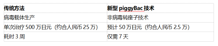 傳統(tǒng)上,CAR-T細胞是通過使用病毒載體引入基因來產(chǎn)生的,但研究人員使用了非病毒載體的piggyBac轉(zhuǎn)座子方法成功培養(yǎng)了CAR-T細胞。該方法屬于酶載體方法之一,與使用病毒載體的方法相比,制造起來更容易、成本更低,直降90%,且有望達到與現(xiàn)有的使用病毒載體的方法相同的治療效果。希望通過降低制造成本,可以促進CAR-T 細胞療法在世界各地普及。