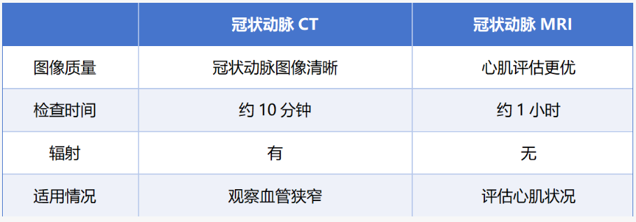 建議:若核心需求是“看血管”,優(yōu)先選CT;若擔(dān)心輻射、或需詳細查心肌,MRI更合適。